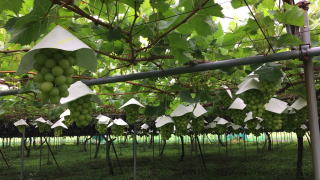 | 一面のシャインマスカットです スズメ除けに紙をかけています |